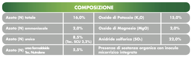 | Composizione | SOIL LIFE16-0-15 + 2 MgO |