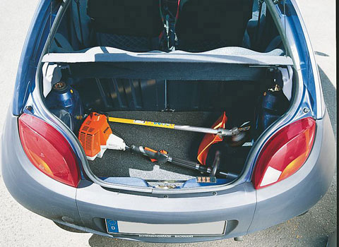 Mentre l'impugnatura circolare favorisce un lavoro più comfortevole ed omogeneo nei movimenti, in special modo nei spazi ristretti. La pompa carburante manuale, viene utilizzata per facilitare la partenza della macchina, avendo carburante pronto ad alimentarla riduce le strappate della fune per avviarla.
