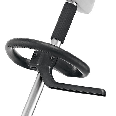 L'impugnatura multifunzione permette un funzionamento comodo e rapido, potendo controllare tutti i comandi motore della macchina con una sola mano, mentre l'altra impugnatura circolare permette di lavorare in modo comfortevole e omogeneo durante le manovre in spazi ristretti.