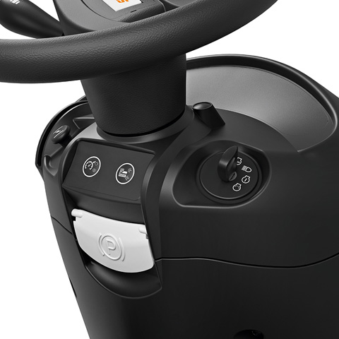 La trazione viene gestita completamente da un solo pedale sensibile alla pressione con cui possiamo regolare la velocità minima e massima d'avanzamento; il senso di marcia avanti e quello di retromarcia vengono invertiti velocemente grazie alla leva posta sotto al volante.