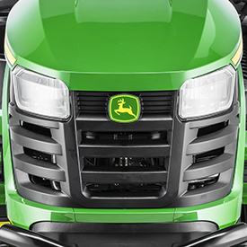 Il trattorino John Deere X147R con scarico e raccolta posteriori presenta un potente motore bicilindrico, una trasmissione idrostatica con pratici comandi a pedale e un piatto tosaerba Edge da 92 cm (36").