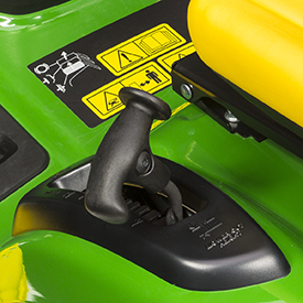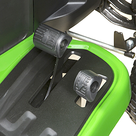 La trasmissione idrostatica Kanzaki® Tuff Torq® consente di variare la velocità all'infinito e facilita i cambiamenti del senso di marcia. Gli acceleratori a pedale affiancati controllano la velocità e il senso di marcia: