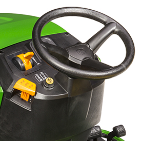 Il volante deluxe offre un maggiore livello di comfort dell’operatore e un maggiore controllo sul veicolo. Il diametro del volante è 35,6 cm (14 in.) sul modello X147R.