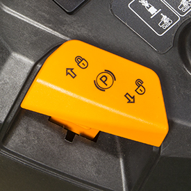 Il comando del freno di stazionamento è situato in posizione agevole per facilitare l'accesso. Mantiene fisso in posizione di blocco il pedale del freno.