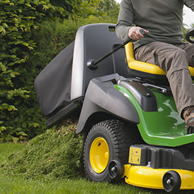 Trattorino X147R: sistema di raccolta posteriore per una finitura perfetta con un cesto di raccolta da 300 l facilmente rimovibile.