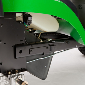 Una robusta cinghia a V ed un grande rullo tensore azionato a molla trasferiscono la potenza alle lame in modo efficiente ed affidabile.